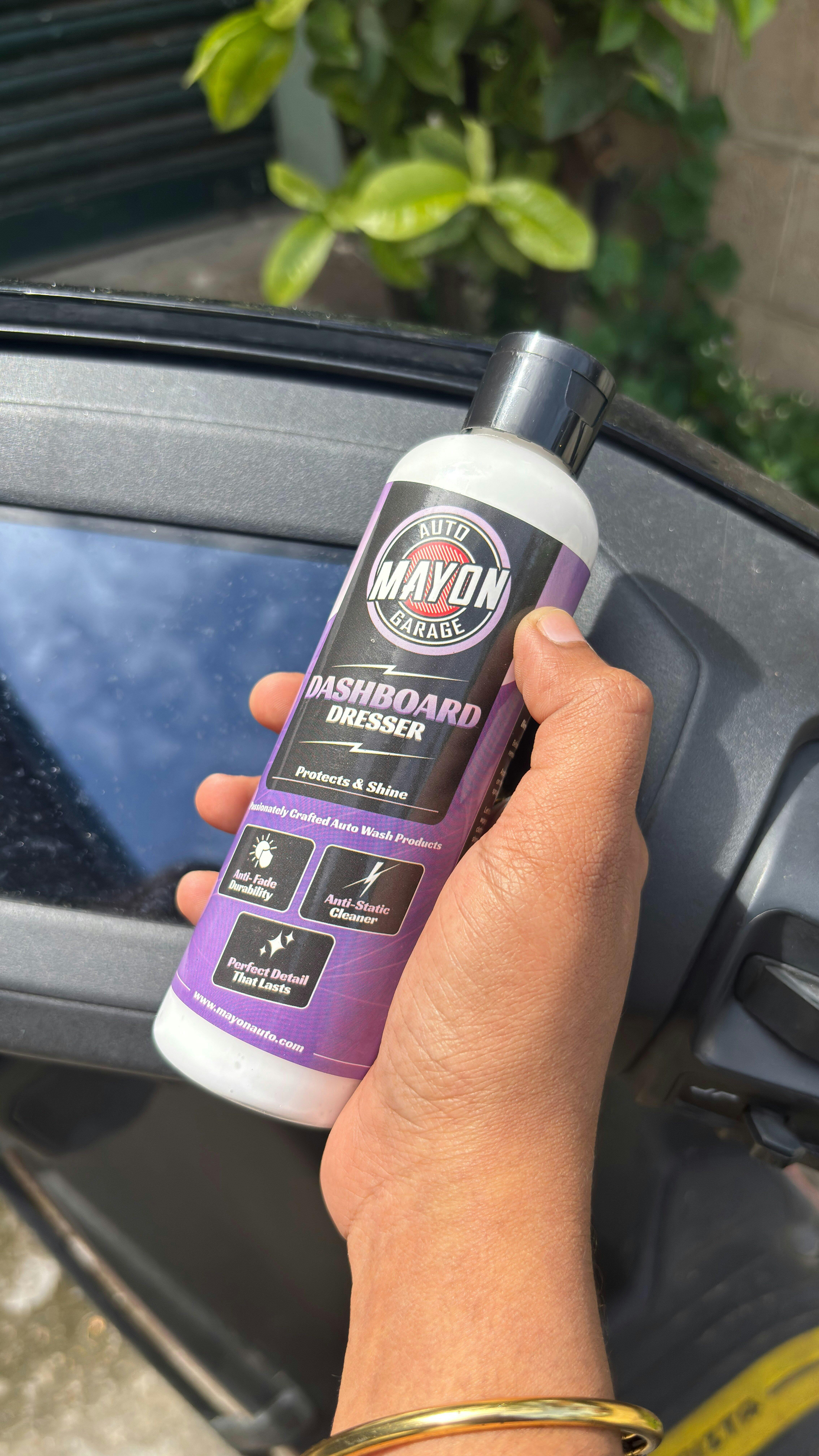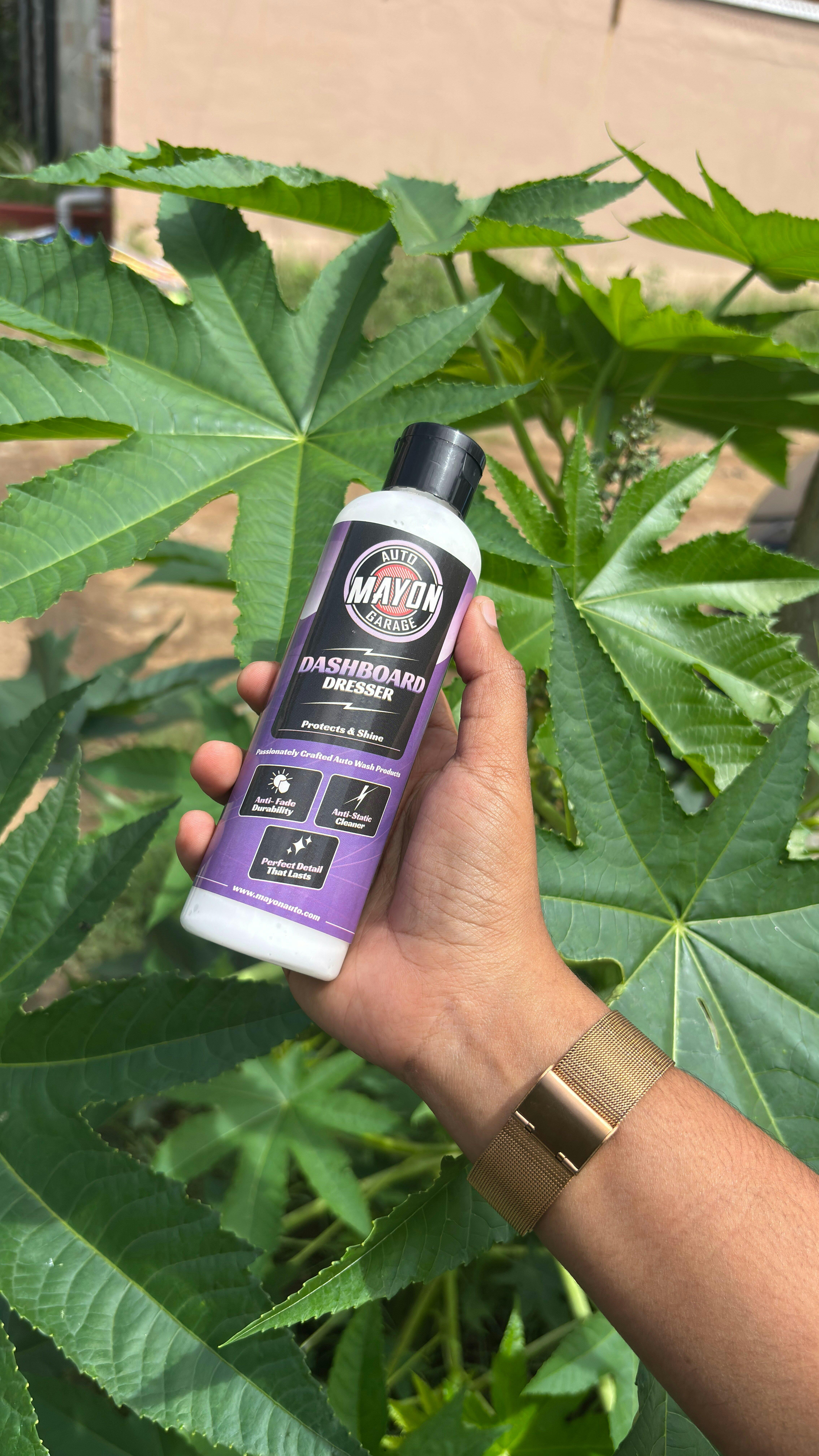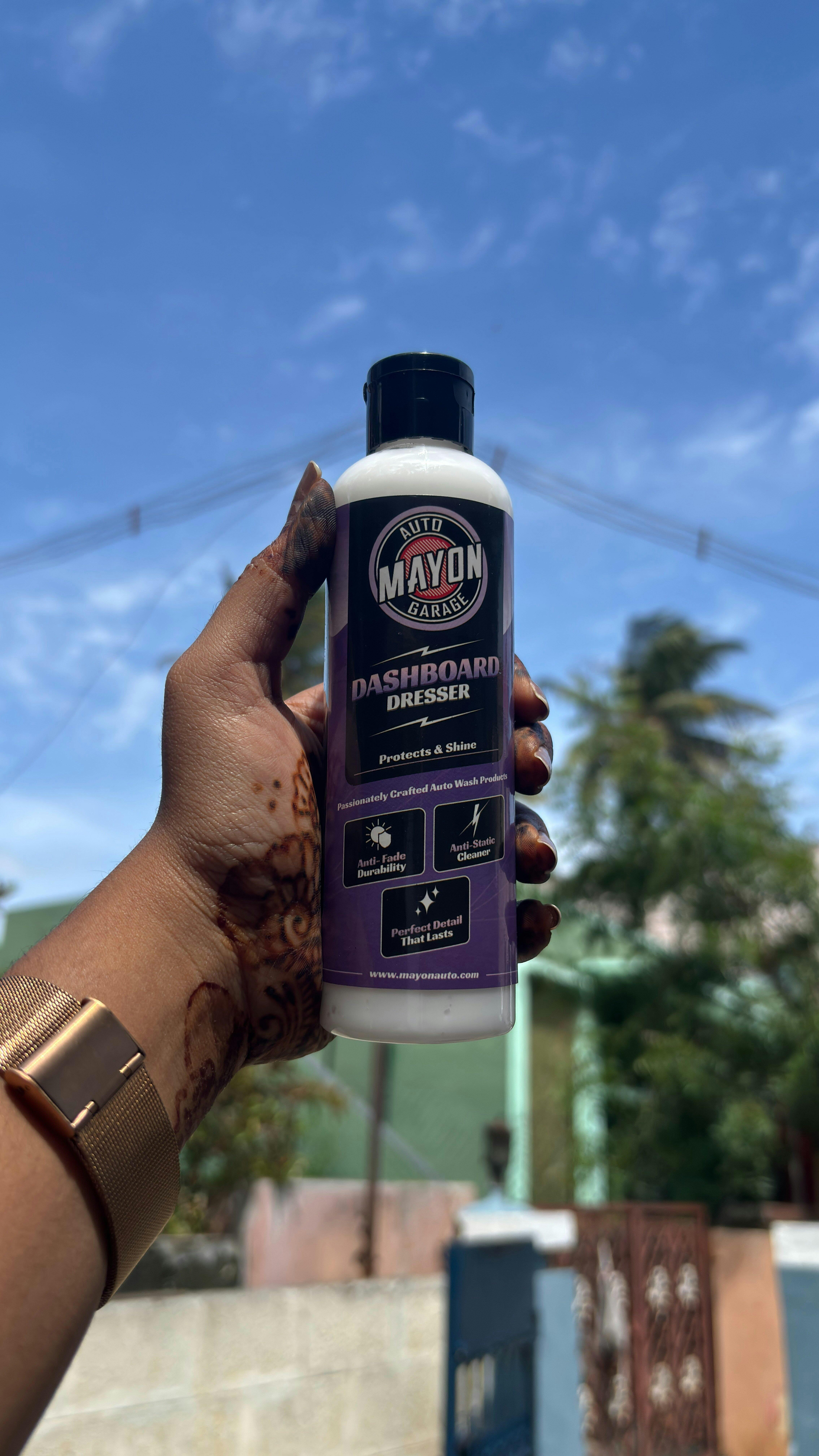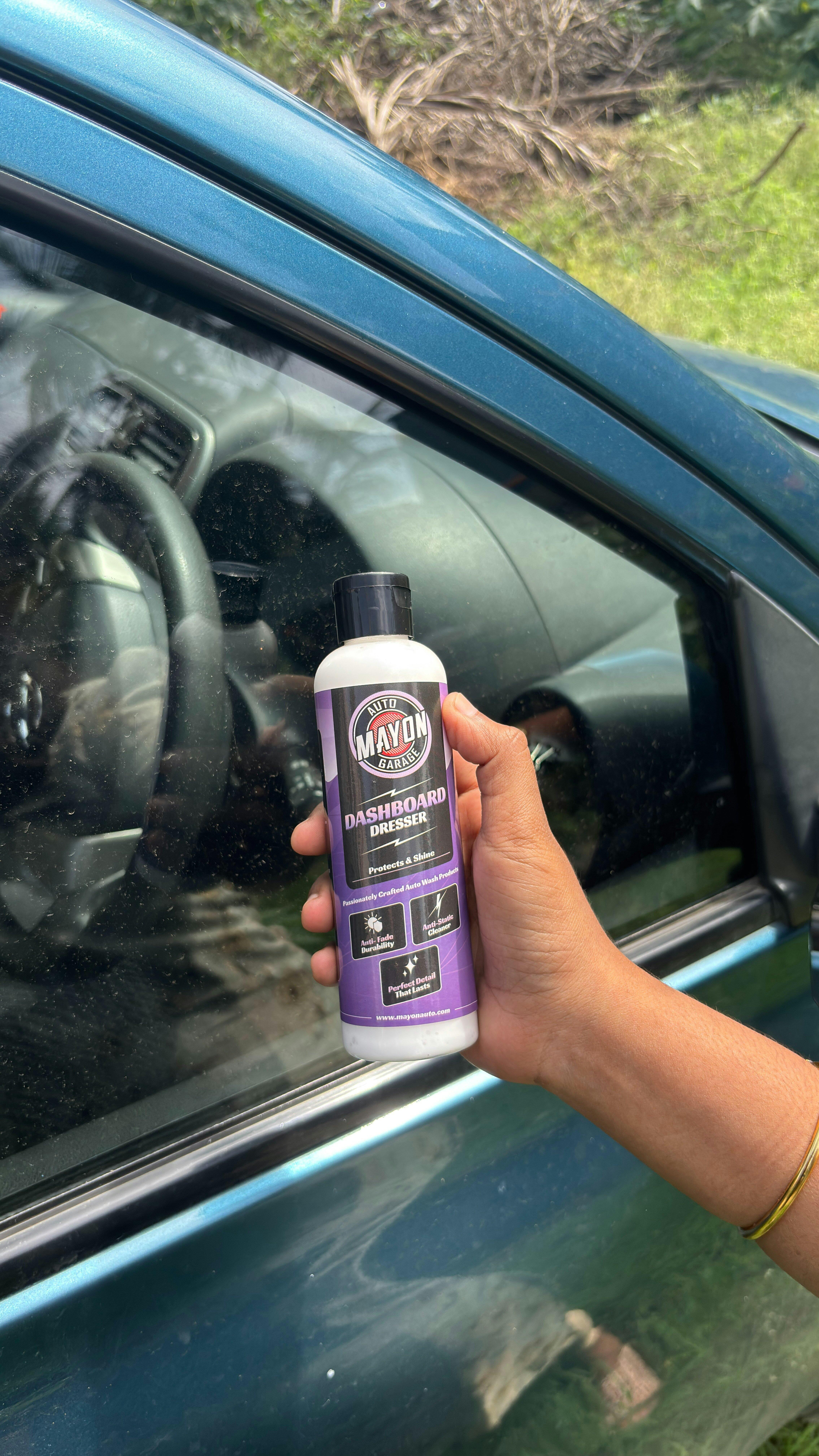 Mayon’s Dashboard Cleaner is expertly crafted for the care of vinyl, rubber, and trim. Unlike other products laden with silicones and waxes that can degrade your surfaces, our water-based formula is designed to enhance and protect without causing harm. Your vehicle’s Dashboard, Seat, and Door pads will maintain their integrity and lustre, thanks to our commitment to superior performance and customer satisfaction. Elevate your auto detailing collection with the Dashboard Dresser, which lays down a water-repellent barrier, ensuring that water beads off effortlessly. Our innovative formula minimises surface tension, preventing water from lingering and leaving behind no residue or water spots. Trust Mayon for a pristine, protected dashboard every time.