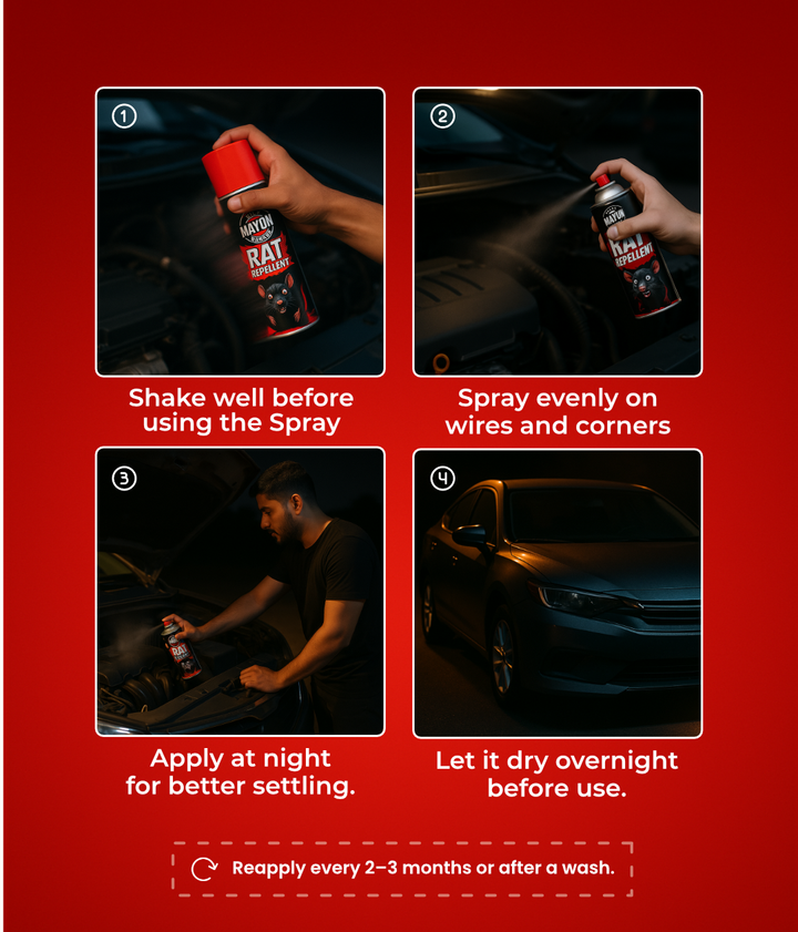 - Repeat as Needed: Reapply every 3 months or sooner if the vehicle is parked in rodent-prone areas.